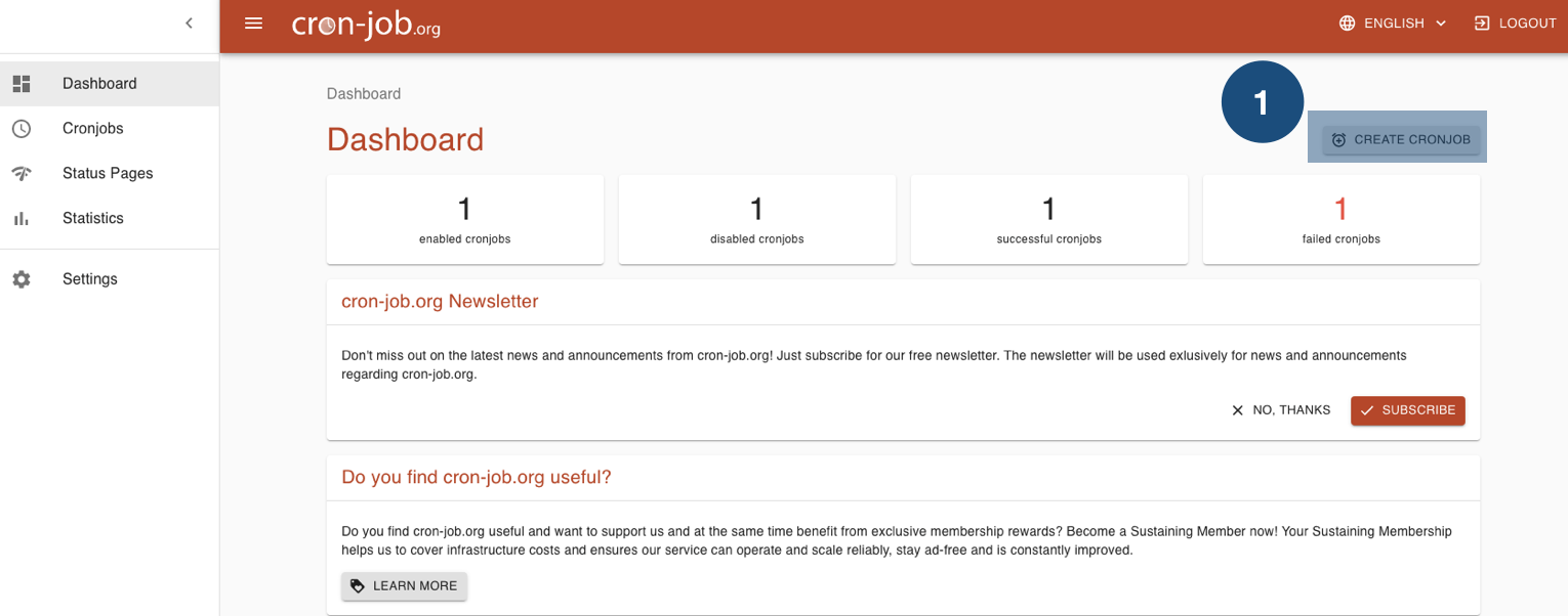 ⚠️ 免费版本的Heroku 若30 分钟内无人发送请求,则系统会进入休眠,因此需要下一步骤。